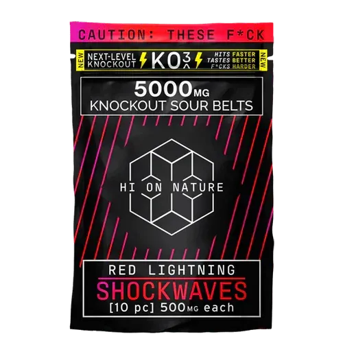 High on Nature's Knockout Sour Belts infused with THC-P offers a unique and potent experience for those seeking an adventurous twist to their edible consumption. THC-P, or tetrahydrocannabiphorol, is a cannabinoid believed to be significantly more potent than THC, providing a robust psychoactive effect. The Knockout Sour Belts are crafted to offer a burst of tangy and sweet flavors that delight the senses while delivering an intense, long-lasting high. Ideal for seasoned cannabis enthusiasts, these sour belts are not just a treat for the taste buds but also a gateway to a heightened sensory experience. As with all cannabis products, responsible consumption is key, and it's advisable to start with a smaller dosage to gauge individual tolerance levels.